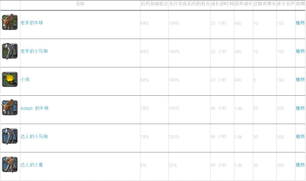 阿尔比恩亚服里不仅可以建造房屋,还可以喂养各种动物,其中不同动物的食物均不一样,包括成长时间、后代基础机会等方面各不一样,还想了解更多相关攻略就赶紧看看下面由小编分享的文章吧!